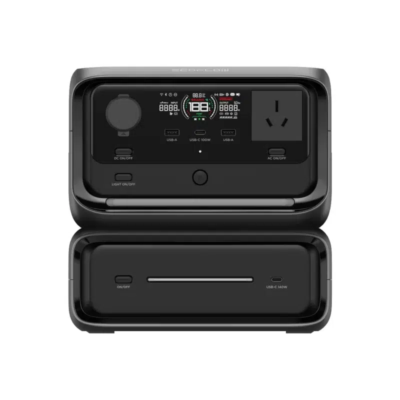 - DELTA 3 y su batería adicional se cargan y descargan al mismo tiempo. La recarga desde paneles solares portátiles, tomas de CA o nuestro Generador Inteligente es muy sencilla.
